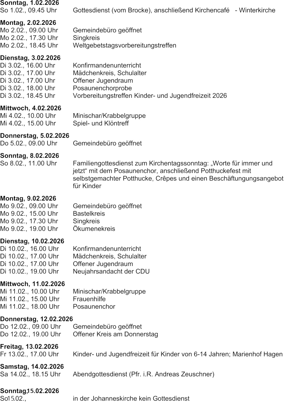 Terminübersicht zum Download (pdf): Terminübersicht Februar 2026